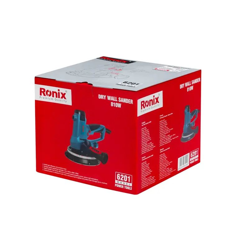 موتور ۸۱۰ واتی قدرت بالایی برای سنبادهزنی سریعتر سقف و دیوار فراهم میکند. تنظیمات سرعت قابل تنظیم بین ۱۵۰۰ تا ۲۸۰۰ دور در دقیقه، عملکردی تطبیقپذیر برای انواع سطوح ارائه میدهد. همراه با ۶ عدد صفحه سنباده ۱۸۰ میلیمتری (دو عدد از هر زبری ۱۵۰#، ۱۸۰#، ۲۴۰#) برای شروع کار. مجهز به سیستم جمعآوری خودکار گرد و غبار و مکانیزم تعویض سریع سنباده برای افزایش بهرهوری. سَری چرخان دستگاه، دسترسی و کنترل بهتری روی زوایای مختلف دیوار فراهم میسازد. چراغ LED داخلی دید مناسب را در گوشهها و فضاهای کمنور فراهم میکند. طراحی برس به گونهای است که امکان سنبادهزنی بدون وقفه تا لبه دیوارها را فراهم میکند. دارای سیستم راهاندازی نرم و حسگر محافظ اضافهبار برای جلوگیری از آسیب به قطعات داخلی.