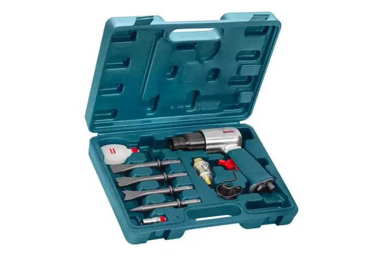 این ست چکش بادی شامل ۱ عدد چکش بادی ۱۵۰ میلیمتری و ۴ عدد قلم بادی با انواع مختلف میباشد.